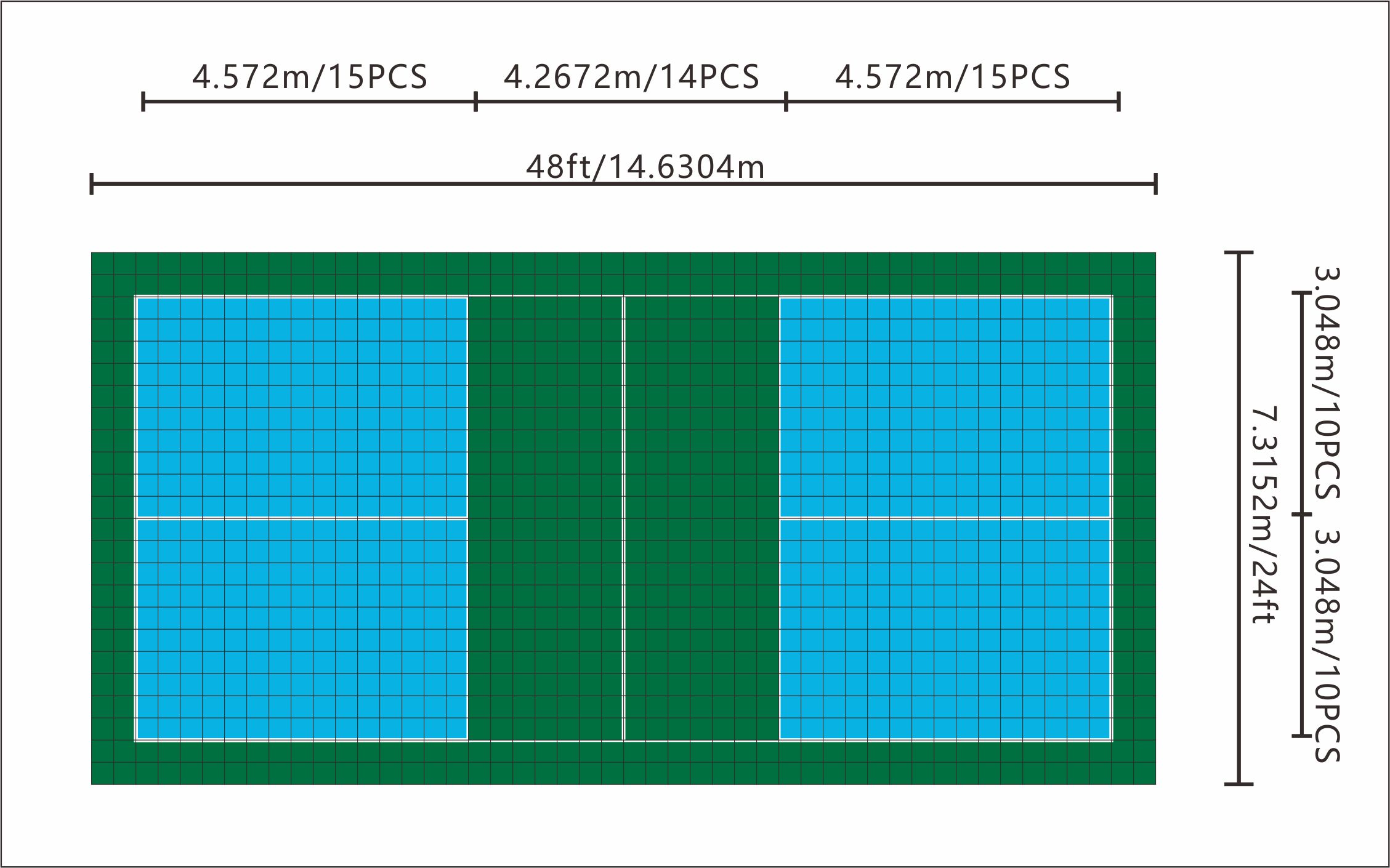Maßgeschneiderter Pickleball Platz 48x24ft Kit